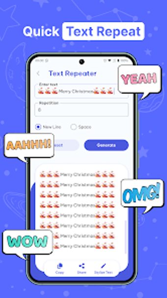 Text Repeater - Art Word Gen là một công cụ tiện ích mạnh mẽ được thiết kế cho người dùng Android, cung cấp một loạt các tính năng để nâng cao việc nhắn tin. Với ứng dụng này, người dùng có thể ngay lập tức lặp lại bất kỳ từ hoặc cụm từ nào nhiều lần, khiến nó trở nên lý tưởng cho các hiệu ứng trò chuyện vui nhộn hoặc gửi tin nhắn hàng loạt mà không cần phải gõ lại nhiều lần. Thêm vào đó, ứng dụng bao gồm một trình tạo xáo trộn để ngẫu nhiên hóa văn bản, cho phép các phong cách nhắn tin sáng tạo và độc đáo.